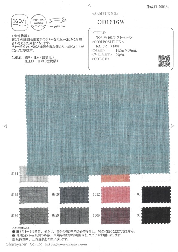 Der reine Jersey wird aus Washi-Papier hergestellt und ist aus einem leichten Stoff gefertigt, wodurch er sich ideal für Frühlings- und Sommer-Schnittmuster eignet.