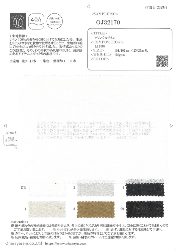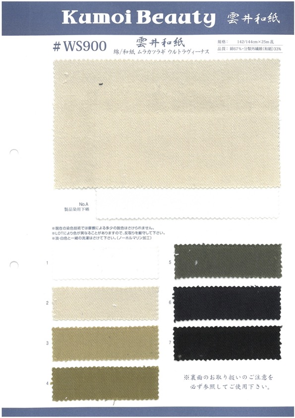 Dieser Stoff wird aus japanischem Papier hergestellt und ist hoch saugfähig, schnelltrocknend und hat ein leichtes, festes und trockenes Tragegefühl.