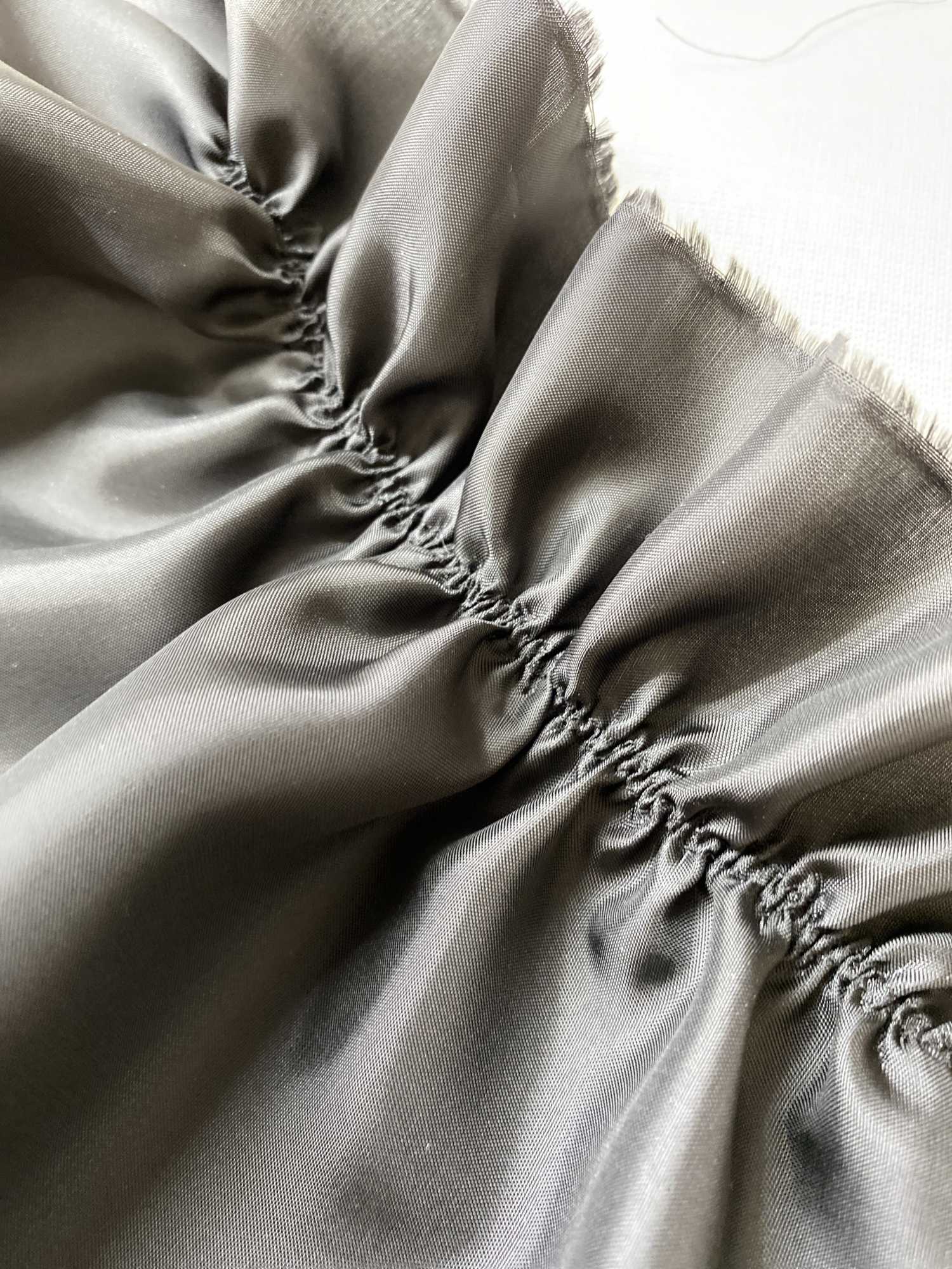 Dies ist ein elastisches Band zum Kräuseln. Kann an Rocksäumen, Manschetten, Taillen usw. verwendet werden.