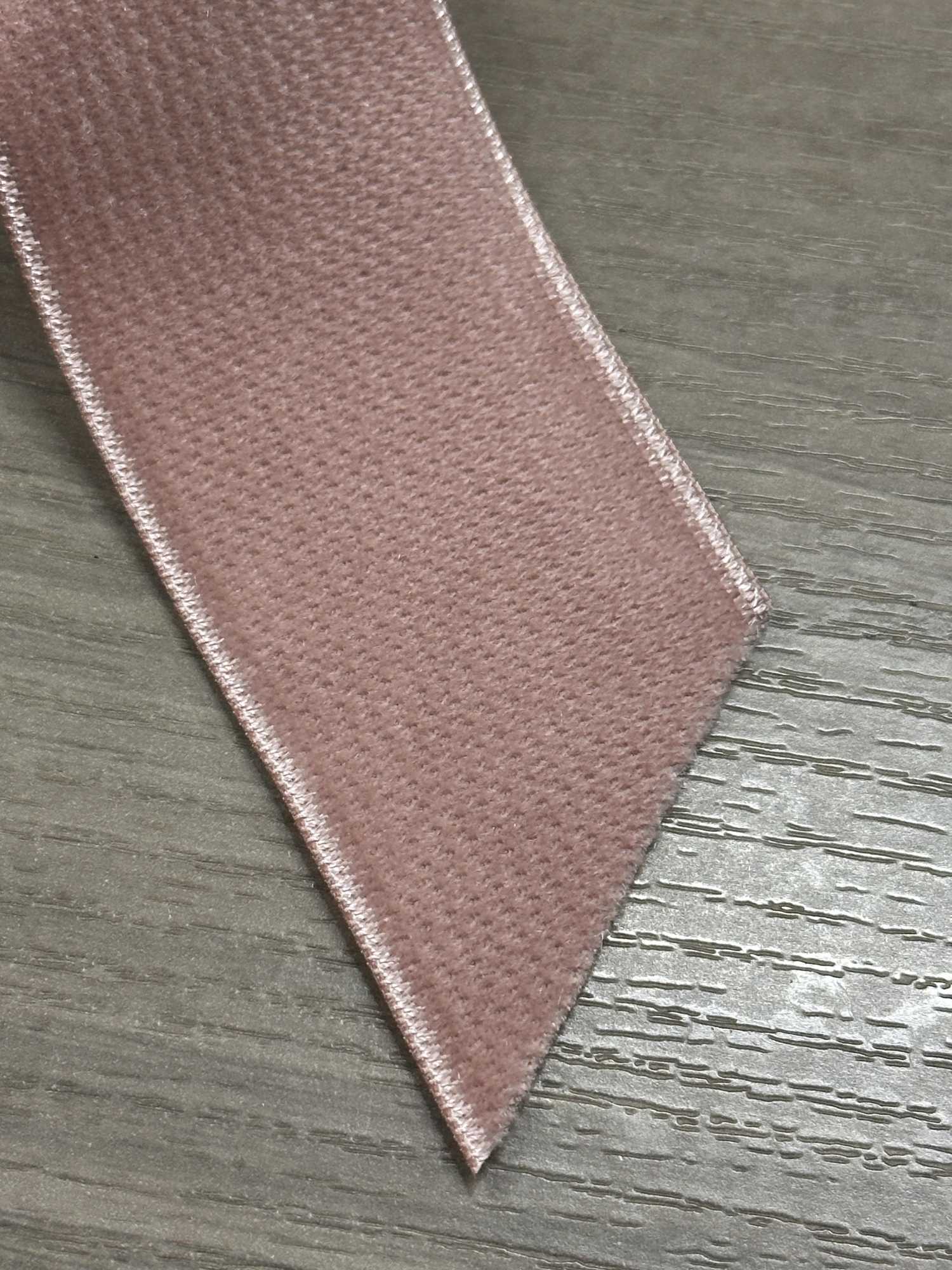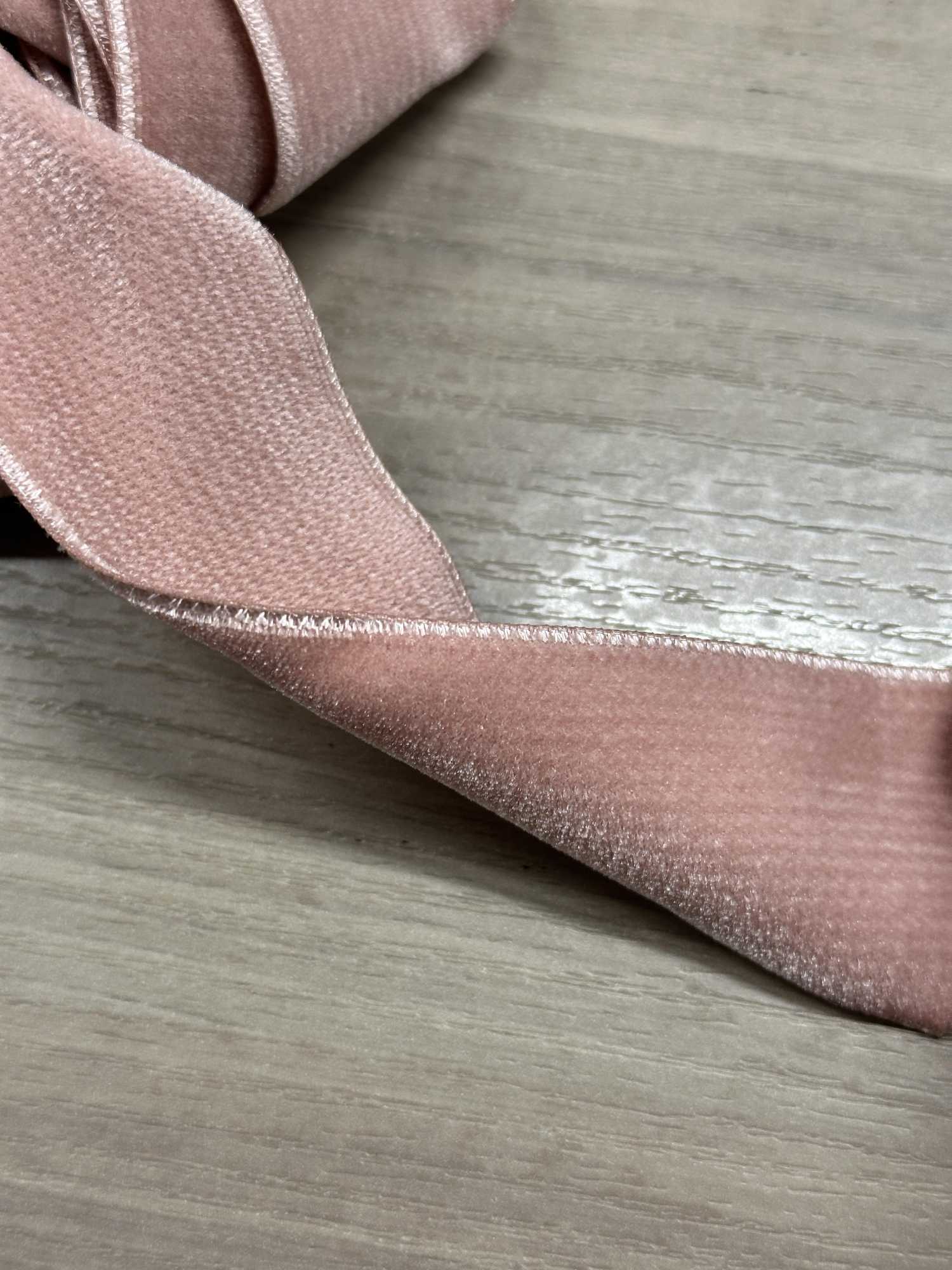 Beide Seiten sind aus Samt gefertigt, wodurch das Band genau die richtige Dicke erhält und eine starke Präsenz ausstrahlt. Es sähe toll aus, wenn es zur Betonung der Taille eines Kleides, als Schulterträger oder als dekoratives Band verwendet würde und so einen klassischen Look kreiert! Es hat eine matte Textur, daher kann man es natürlich auch für legere Anlässe verwenden. Ich bin begeistert, wenn ich die rosafarbene Nuance von C/#20 mit der Textur dieses Samts kombiniere.