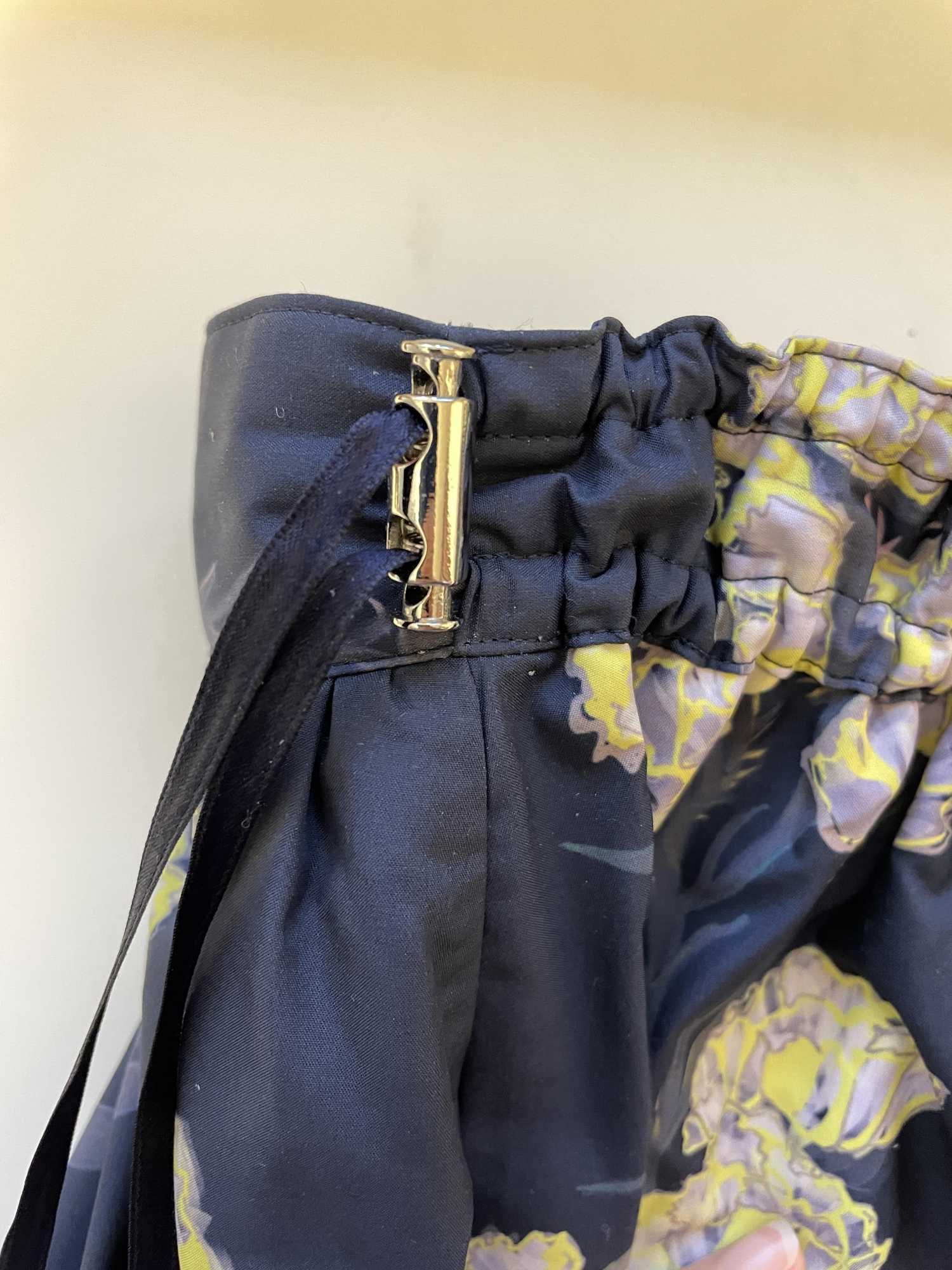 Geraffter Rock. Dient zur Anpassung der Taillenweite. Der Stopper tendiert eher zum sportlichen Stil, aber er wirkte modern und war sehr einfach zu bedienen.