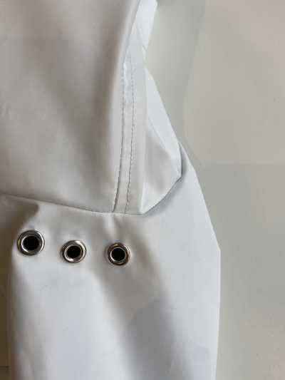 Moritos öse . Bitte verwenden Sie ein spezielles Stanzwerkzeug für die Montage von Druckknöpfen und eine Pressmaschine. Sie können den Ring so einsetzen, wie er ist, ohne ein Loch zu bohren, und ihn festnageln. Dies funktioniert jedoch je nach Dicke des Textils möglicherweise nicht. Testen Sie es daher unbedingt an dem von Ihnen verwendeten Textil. Wenn Sie Schwierigkeiten haben, die Öse richtig zu treffen, machen Sie bitte vor dem Anbringen der Öse eine öse im Textil.